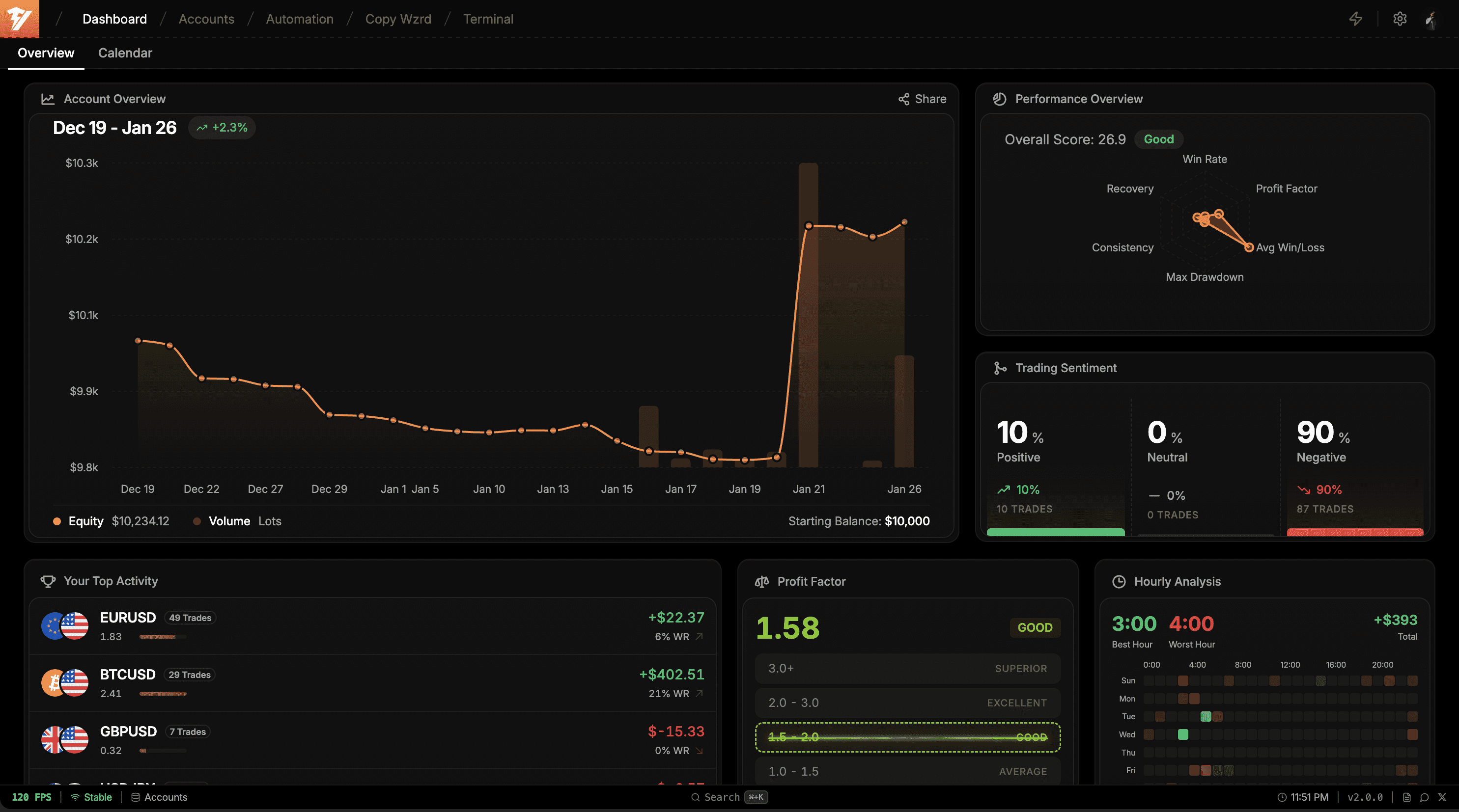 Stop juggling 5 different terminals. One dashboard shows everything: all accounts, all positions, total P&L, win rate, drawdown, and risk exposure. Trading made simple.